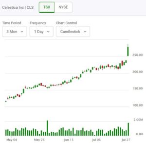 We featured Celestica Inc. (CLS) in this column yesterday. Today, Celestica stock gained 16.92% or $40.29 to close at $278.36 with 1.8M shares traded.
