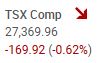 The TSX composite index declined -169.92 points or -0.62%, to close the session at 27,369.96.  The total volume of shares traded was about the same as the volume of shares traded yesterday. The TSX decline was a sort of orderly pullback.