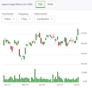 On the other hand, Agnico Eagle Mines (TSX:AEM) gained 4.23% or $7.10 to close at $175.02 with 1.2M shares traded. At the small caps level, Ivanhoe Mines (TSX:IVN) was up 7.01% or $0.79 to close at $12.05 with 6.6M shares traded.
