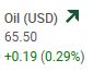 Oil Price:     US oil prices fell today to $66.21 per barrel.  US Oil price is at $65.50 per barrel, as of the time (11:00 pm ET, Tuesday) of this post update.