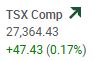 The TSX composite index gained 47.43 points or 0.17%, to close the session at 27,364.43. The TSX is up two consecutive days, but the gain percentage remains relatively small so far this week.