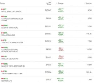 Industry Groups: The top five industry groups in the TSX today were: Media Diversified, up 5.32%; Aerospace & Defense, up 2.99%; Computer Hardware, up 2.97%; Airlines, up 2.88%; and Broadcasting, up 2.57%.