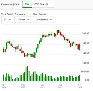 - Kinaxis Inc. (TSX: KXS) also posted strong gains, climbing 5.73% (↑$9.77) to $180.40 with 170,500 shares changing hands.