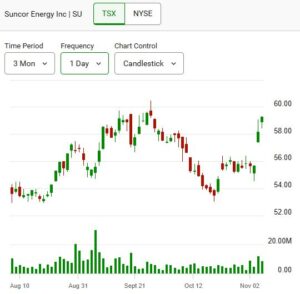 - Suncor Energy Inc. (TSX: SU) extended its breakout that began earlier in the week, advancing 1.89% (↑$1.10) to $59.27 on 8.6 million shares. The stock has rallied for three consecutive sessions and continues to attract attention for its 4% dividend yield.