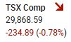 The S&P/TSX Composite Index fell 234.89 points, or 0.78%, to close at 29,868.59 on Thursday, as renewed valuation concerns and worries about the U.S. economy weighed on investor sentiment. Broad weakness across most sectors left the Toronto market struggling to find footing amid a global risk-off tone.