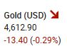 Gold and Silver: Gold was higher earlier in the day but has since declined. Gold is down $46.00, or 0.99%, at $4,590.80 per troy ounce, while silver is down $3.66, or 4.01%, at $87.56 per ounce as of the time of this update.