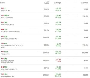 EV manufacturers’ stocks are on the roll. Tesla is up today, Li Autos rather than BYD has been the more consistent Chinese EV company in the US markets.