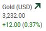 Gold was down today at the regular market session but rose in the aftermarket hours. The image shown was captured after hours.