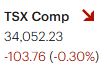The S&P/TSX Composite Index declined by 103.76 points, or 0.30%, to close at 34,052.23. This marks a modest pullback following eleven consecutive sessions of gains.