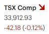 The S&P/TSX Composite Index slipped 42.18 points, or 0.12%, to close at 33,912.93. Throughout the session, the index fluctuated around the previous day’s closing level of 33,955, reflecting a largely range-bound trading day.