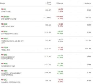 The EV manufacturers were down today, but the new energy stocks had a better day and made up for the poor showing by the EV manufacturers. The new energy stocks are grouped in the Utilities sector.