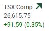 The TSX composite index gained 91.59 points or 0.35%, to close the session at 26,615.75. The TSX was back today as the best performer of the four North American major indexes that we track and report on. The index has gained in twenty-four of the last twenty-eight market sessions.