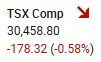 The TSX Composite plunged -178.32 points, or -0.58%, to close the session at 30,458.80. The index closed down today after two sessions of robust gains.