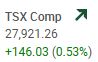 The TSX composite index advanced 146.03 points or 0.53%, to close the session at 27,921.26. The TSX continues to eye the 28,000 points level, but the level has so far proved elusive.