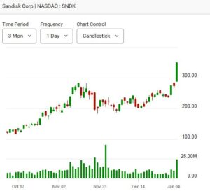 Data storage and disk drive manufacturers were among the strongest performers of the day, benefiting from sustained demand for computing capacity driven by cloud hyperscalers and AI model training. SanDisk Corporation (SNDK) surged 27%, while Western Digital Corp. (WDC) advanced 16.8%. Seagate Technology Holdings Plc gained 14%, extending the rally across the data storage hardware segment.