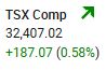 The S&P/TSX Composite Index closed higher for a third consecutive session, rising 187.07 points, or 0.58%, to finish at 32,497.02. The TSX modestly lagged the S&P 500 and NASDAQ but continued to show strong internal momentum, driven largely by strength in mining and technology-related names.
