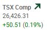 The TSX composite index gained 50.51 points or 0.19%, to close the session at 26,426.31. The TSX, for the third consecutive market session, was the worst performer of the four North American major indexes that we report on every market day. However, the index remains the best performer of the four indexes over the past six weeks. The index has gained in twenty-two of the last twenty-six market sessions. The total volume of shares traded on the TSX on Tuesday was down almost 10%.