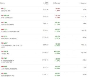 Industry Groups: The top five industry groups in the TSX today were: Tires & Rubber Products, up 14.04%; Electrical Components & Equipment, up 8.35%; Construction & Agricultural Machinery, up 4.78%; Office Equipment, up 4.63%; and Paper Packaging, up 3.59%.