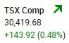The S&P/TSX Composite climbed 143.92 points, or 0.48%, to close the session at 30,419.68. The index joined the other major North American indexes to end the session with a gain. Yesterday’s TSX index’s decline now stands as the only decline in the last six market sessions.