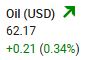 Oil Price:  The US Oil price is at $62.77 per barrel, as of the time (11:30 pm ET, Tuesday) of this post update.