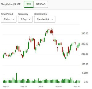Shopify Inc. (TSX: SHOP) continued its rebound from yesterday’s session, rising 1.72% ($3.77) on trading volume of 1.3 million shares. The stock’s improving momentum suggests renewed investor interest following recent volatility.