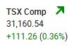 The S&P/TSX Composite Index rose 111.26 points (0.36%) to close at 31,160.54. After two consecutive down sessions, the TSX reversed course, recovering roughly 40% of the cumulative decline from those days. Trading volume increased, indicating that the day’s advance was supported by stronger participation. The index had already finished yesterday well off its lows, and that positive momentum carried through into today’s session. There was a noticeably different tone in the market—this time, the move had clear momentum behind it.