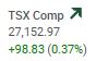The total volume of shares traded at the TSX today was 354,800,970, or 1.5% less than, roughly about the same as, the volume of 360,471,134 shares traded yesterday.