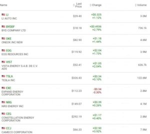 Industry Groups: The top five industry groups in the US markets on Wednesday were: Marine Port Services, up 3.87%; Coal, up 2.71%; Integrated Oil & Gas, up 1.86%; and Oil & Gas Refining & Marketing, up 1.82%.