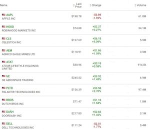 Other stocks to keep an eye on are: Shopify Inc. (TSX:SHOP), up 3.46%, Celestica Inc. (TSX:CLS), up 5.04%, and Cameco Corporation (TSX:CCO), up 3.81%, were clear winners today.