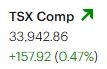 The S&P/TSX Composite Index returned to positive territory today following yesterday’s near carnage. The index advanced 157.92 points, or 0.47%, to close at 33,942.86.