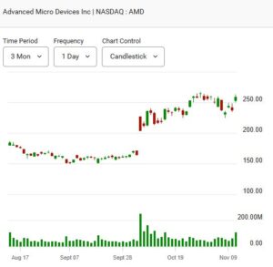 Advanced Micro Devices (NASDAQ: AMD) was among the session’s standout performers, surging 8% after investors cheered the company’s bullish outlook for AI data centers and strong chip sales guidance. While enthusiasm around AI growth remains robust, some investors continue to express caution over stretched valuations across the sector.