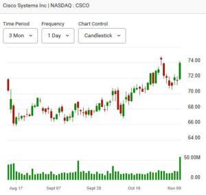 After the closing bell, Cisco Systems Inc. (NASDAQ: CSCO) reported strong fiscal first-quarter earnings, sending its shares up 8% in after-hours trading. The company’s results and full-year outlook both exceeded Wall Street expectations, with management citing robust AI-related demand as a key growth driver. Cisco’s stock had already gained 2.8% ahead of the report.