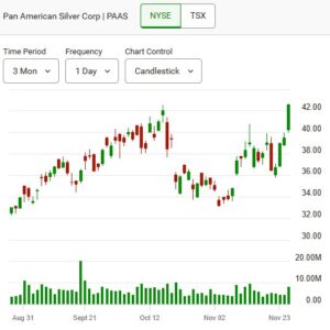 Pan American Silver Corp (TSX: PAAS) or (NYSE:PAAS) is a stock worth keeping an eye on. The stock was up 7.77% or $3.07, closed at $42.56 with 8M shares traded at the NYSE.