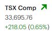 The S&P/TSX Composite Index advanced 218.05 points (+0.65%) to close at 33,695.76, finishing near the session high after maintaining positive momentum throughout the day. The index now sits just below this week’s peak of 33,858 and remains within reach of its 52-week high of 34,544.46.