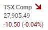 The TSX composite index declined -10.50 points or -0.04%, to close the session at 27,905.49. The TSX went through some volatility today but finally finished slightly shy of the previous session’s closing.