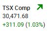 The TSX Composite Index rose a muscular 311.09 points, or 1.03%, closing the session at 30,471.68. The index has now gained in the last six consecutive market sessions with today’s gain being the highest during the six session period.