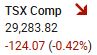 The TSX composite index declined -124.07 points or -0.42%, to close the session at 29,283.82.