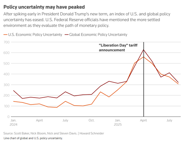 The Fed is now comfortable enough about meeting its inflation target that it cut its benchmark rate by 25 basis points this week. Fed Chair Jerome Powell played down the market impact of Trump’s calls for him to resign and the president’s so-far unsuccessful attempt to fire Governor Lisa Cook.